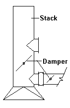 The main damper in the stack is used to control draft in the furnace. It is normal adjusted to achieve a negative 0.05 inches H2O pressure at the bridgewall. It is not used to control combustion air which is controlled by air plenum dampers or air registers at the burner(s). In the example used herein, it is used to redirect the flue gasses to the air preheat system. |