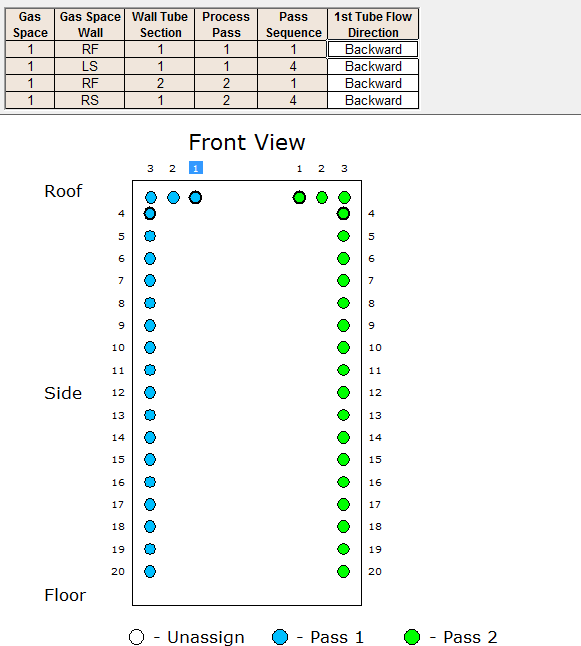 And the radiant section will be as we established previously. Note that the lower bare row of the shock tubes are not in the same triangular pattern as the remainder of the convection section. This is done to center this row of tubes to allow the hip tubes to connect to the row using the same tube spacing as the remainder of the radiant tubes.